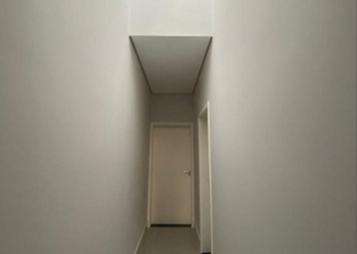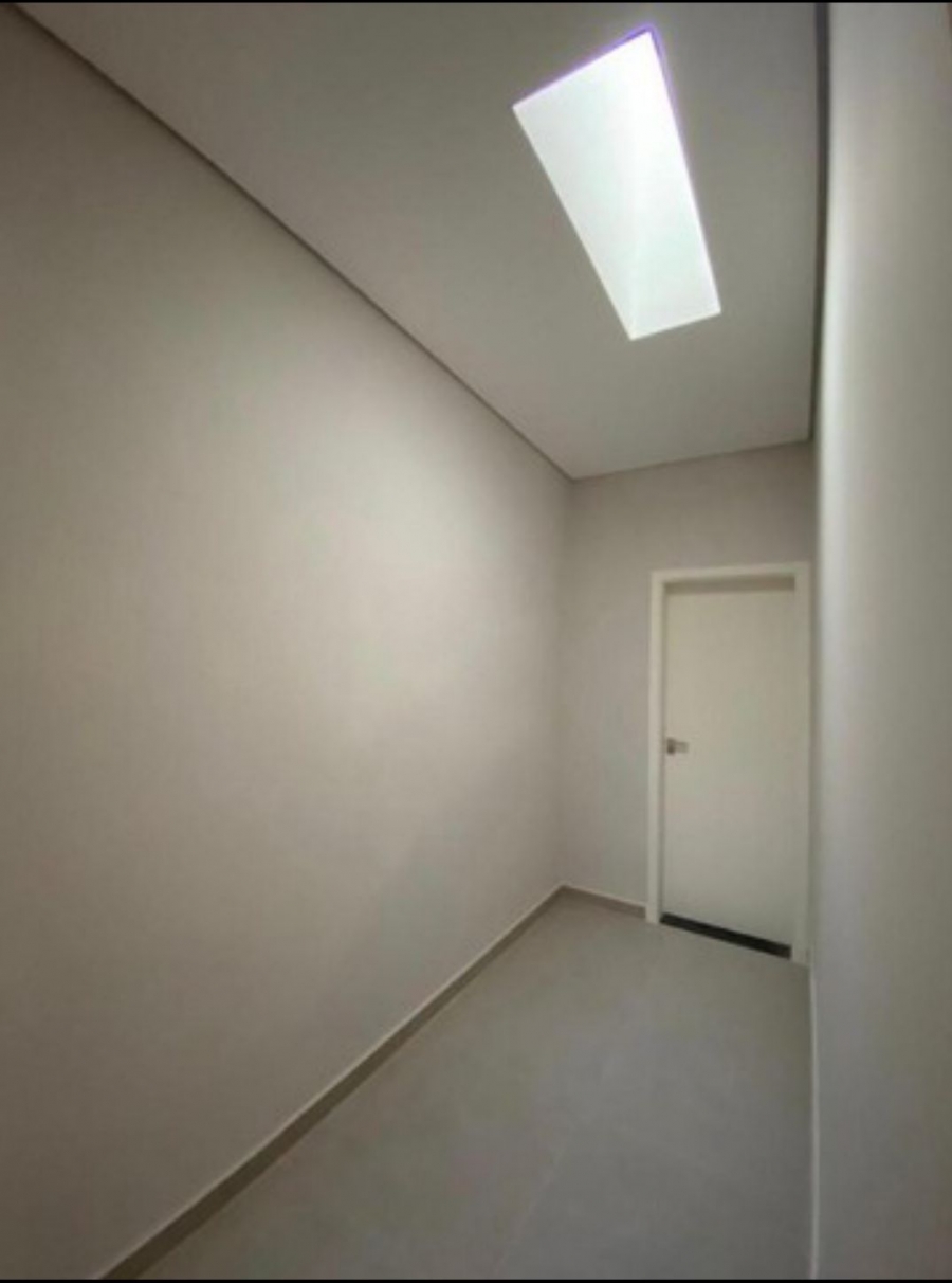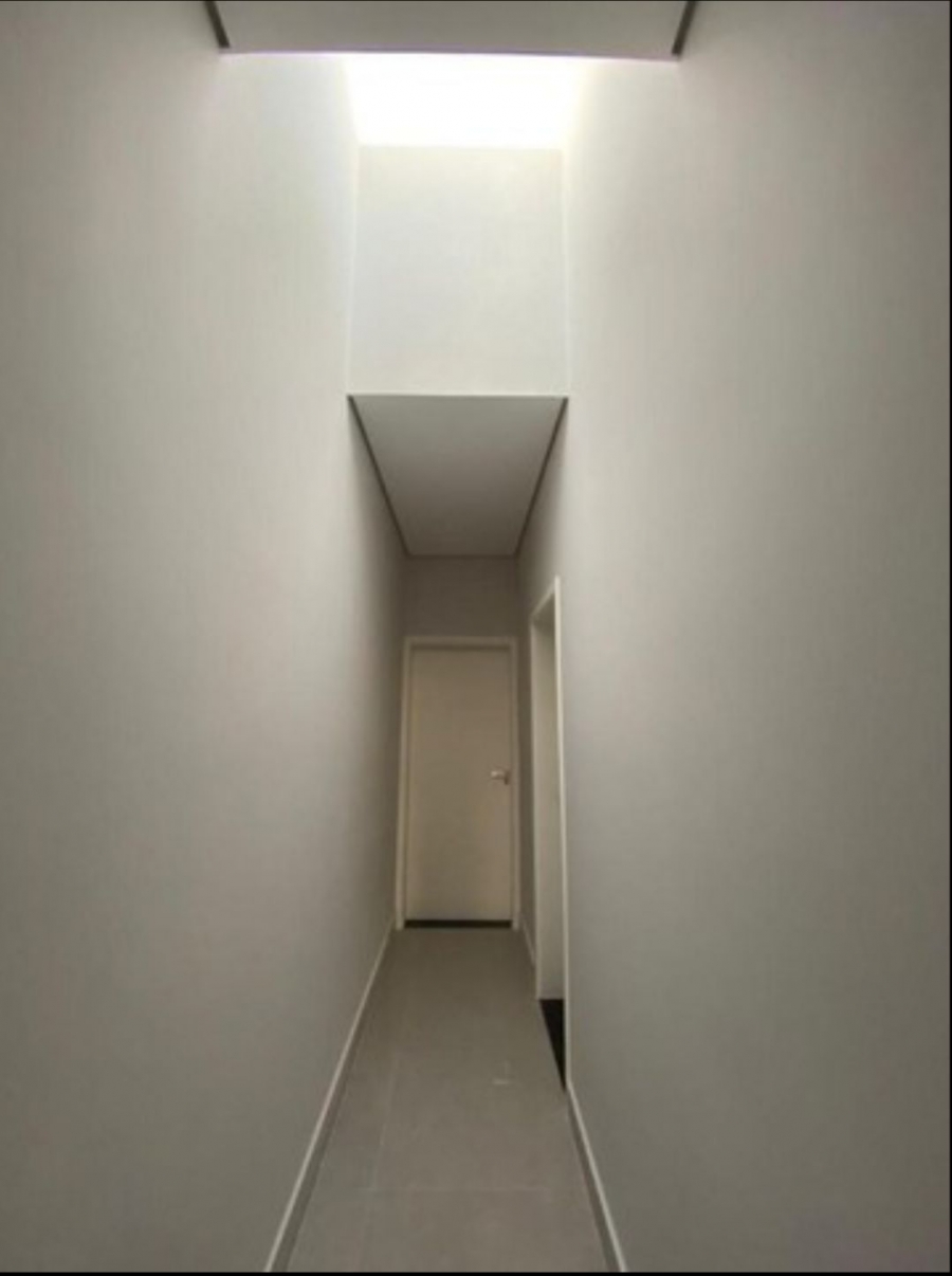 Casa com luminárias LED embutidas, preparada para instalação de ar-condicionado e água quente.