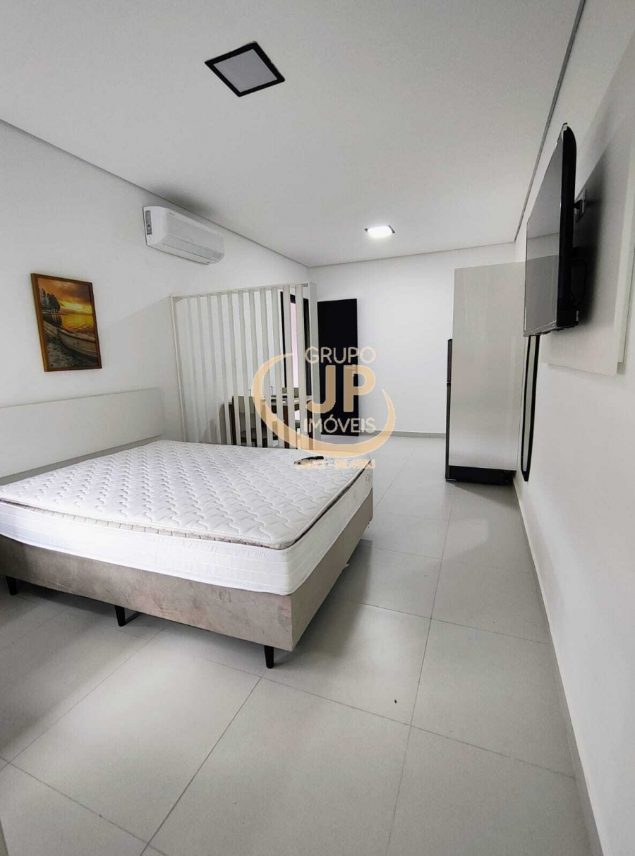 01 dormitório com cama de casal, ar-condicionado, TV e planejados;