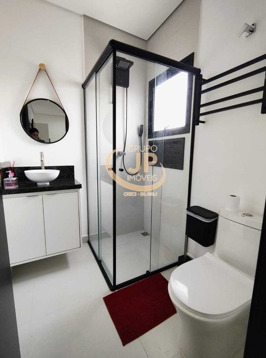 01 WC social com gabinete e cuba, aquecedor de toalhas e box blindex;